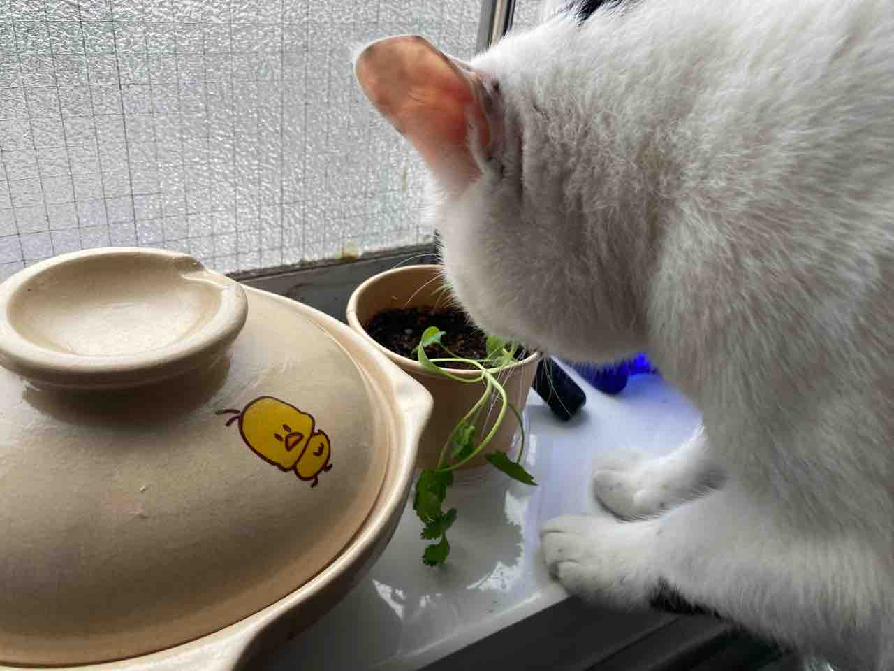 (猫ちゃんはパクチーを食べても健康には問題ないそうです)