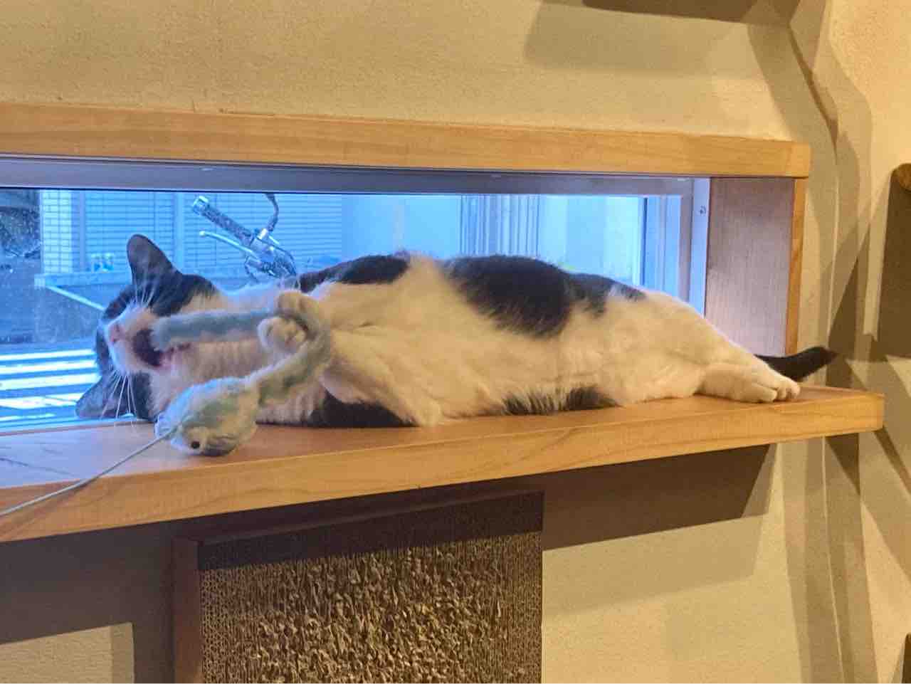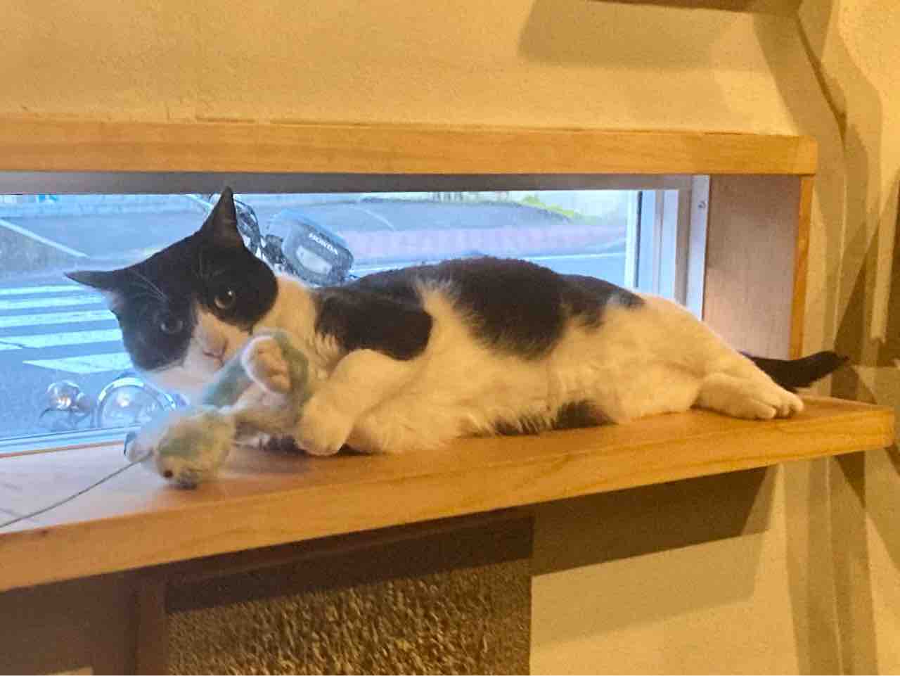 最近開店前にお気に入りのおもちゃで遊ぶのが日課のイッチ。