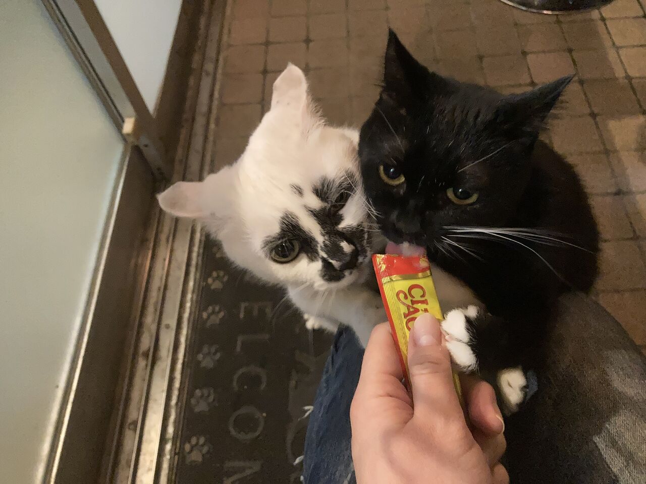 ちゅ~るを食べるときだけは仲良し?な2人。