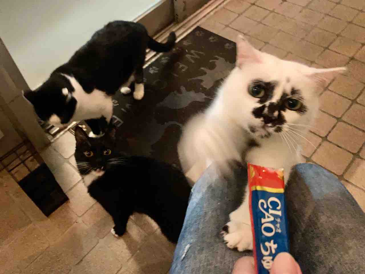 2021年06月27日 Muddy Cat 定期便 6/22〜6/26 今週はヒマな日が多かったです。むむむ。チーム女子(ミーちゃんを男の子だと思ってる方が結構いますが女の子ですよ)顔っ。タビ子の戯れおやつは仲良く。いつも愛知県から来てくださるお客さまからおやつをいただきました。ありがとうございます!これは那須どうぶつ王国のお土産のスナネコせんべいスナネコとマヌルネコのグラスも買いました。当店オリジナルカクテル「猫まっしぐら」をご注文のお客さまにはこちらのグラスでお出ししまーす。遊びに来てね。ランキング参加しています。下のバナー2つをぽちっとお願いします。 スポンサードリンク スポンサードリンク 「Muddy Cat」カテゴリの最新記事 < 前の記事次の記事 > コメント コメント一覧 玉ちゃん 2021年06月27日 18:20 タビさんの原型が留まっていない🤣 コメントフォーム 名前 コメント 記事の評価 リセット リセット 顔 星 情報を記憶 コメントを投稿する