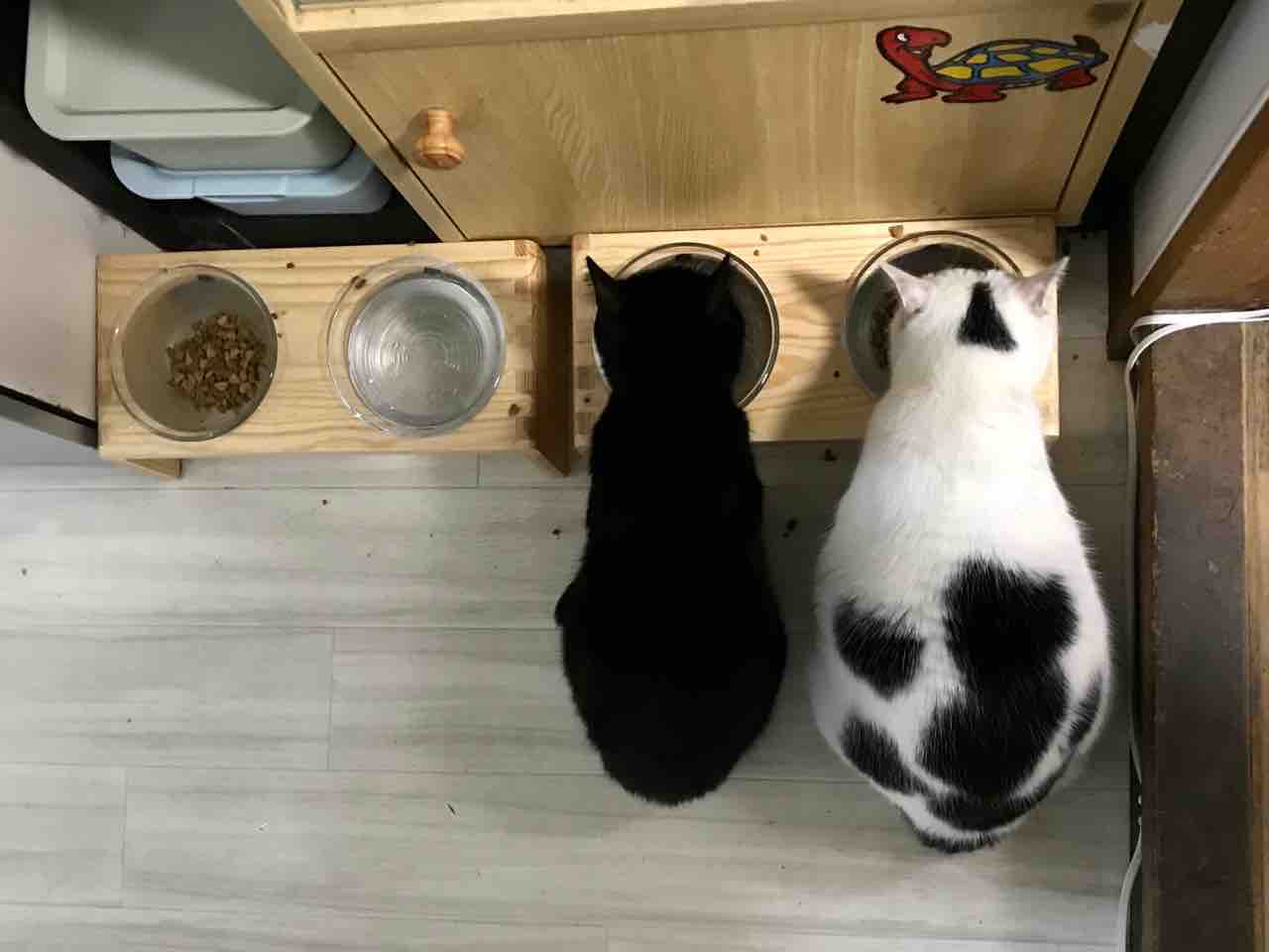 ミーちゃんとタビ子は体長はほぼ一緒なのに横幅が…。